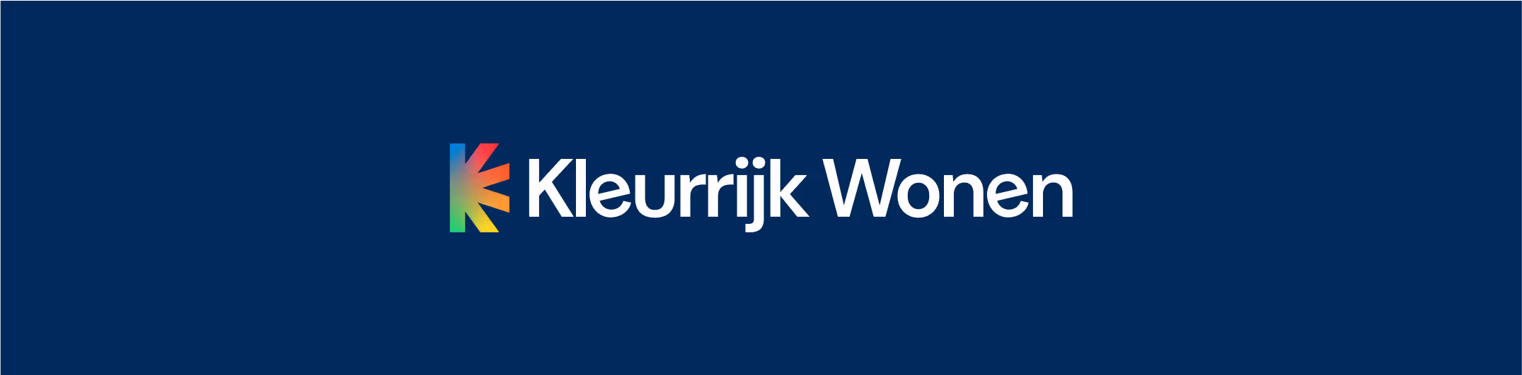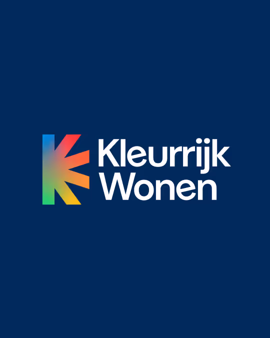 Wie goed kijkt, ontdekt de subtiel verwerkte 'K' in het beeldmerk—een knipoog naar de naam en identiteit van de organisatie. Ook het woordmerk draagt bij aan de eigenzinnige uitstraling, met heldere lettervormen en een speelse, eigenwijze 'e' die het karakter van Kleurrijk Wonen onderstreept.